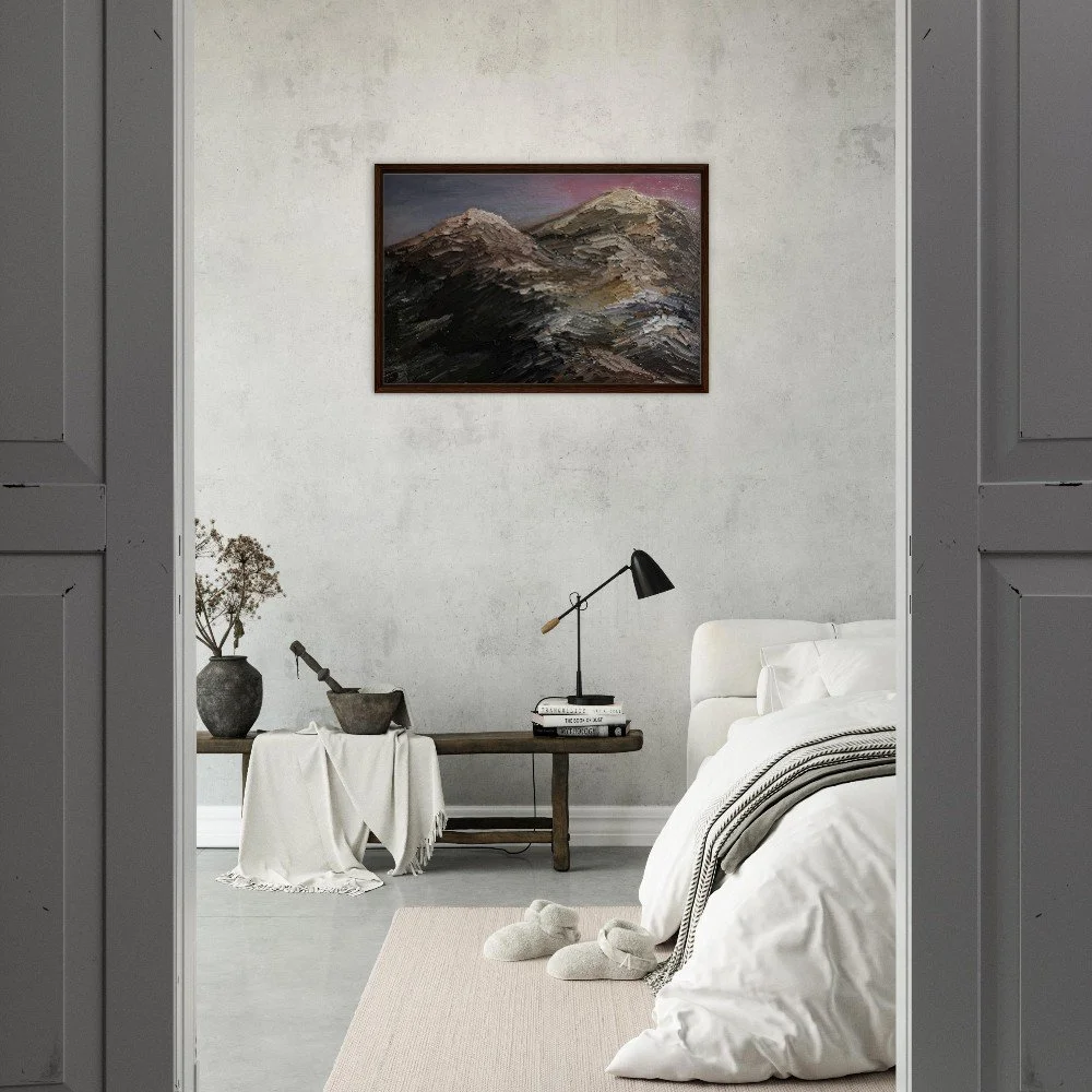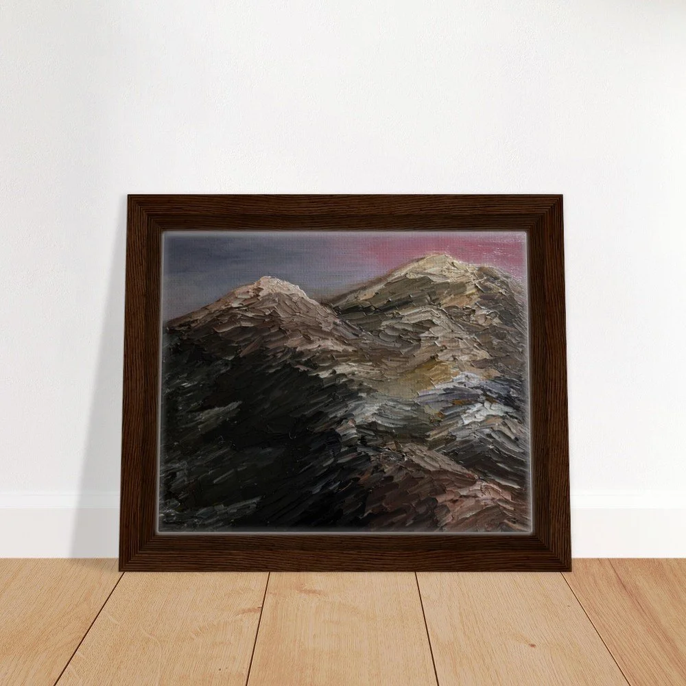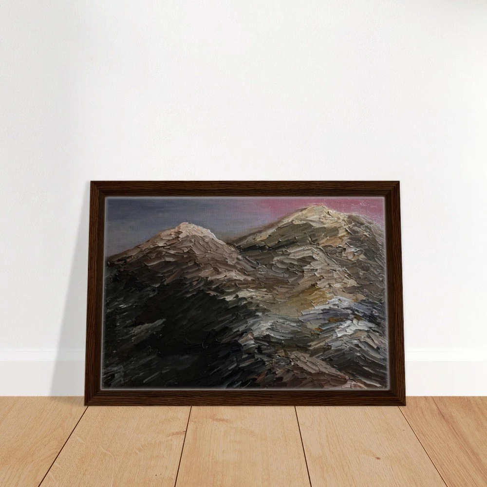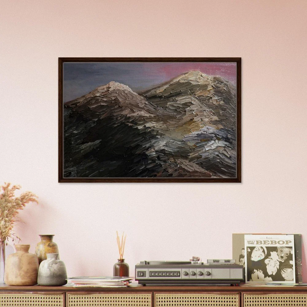 Bring the serene beauty of New Hampshire's White Mountains into your home with this stunning framed canvas print. Featuring a majestic silhouette of Mt. Washington against a vibrant pink sky, this artwork adds depth and character to any room. Our premium canvas is printed on a durable cotton-polyester blend (300-350gsm) using high-quality inks for long-lasting, vibrant colors. Mounted on FSC-certified wood stretcher bars and presented in a sleek, slim frame (available in Black, Natural Wood, or Dark Brown), this piece offers a captivating art experience. Choose from 13 sizes to perfectly fit your space. Includes a hanging kit for easy installation. Printed and shipped on demand with no minimum orders.